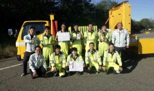 10月24日に㈱ネクスコ・メンテナンス新潟様主催で交通規制作業の能力向上などを目的とした交通規制競技会が開催され、当社からは長岡作業所と新潟作業所それぞれ1チームづつ参加しました。参加した8チーム中、長岡作業所チームが1位、新潟作業所チームが3位と見事入賞し表彰されました。